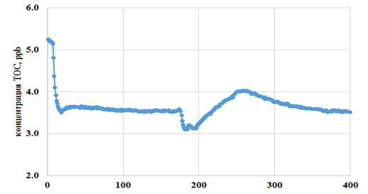 Пример временной зависимости концентрации общего органического углерода